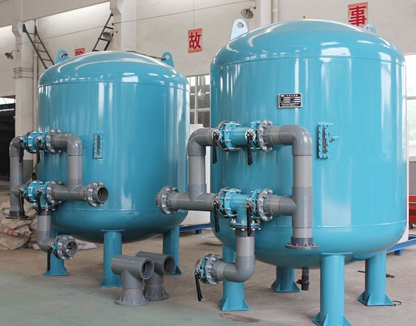 多介質過濾器在運行中是屬于壓力式過濾,過濾水流由于壓力的壓迫作用由進水口進到濾料層,濾料層中是由多種類型的砂粒排列而成,形成緊密的過濾層,使得存在水中的微粒可以獲得更多的機會與濾料發生碰撞,大顆粒等雜質會在多介質過濾器中的吸附與阻流作用而被濾層表面截留下來,從而可以獲得較為澄清的水,一般過濾之后的出水懸浮物含量<5mg/L。