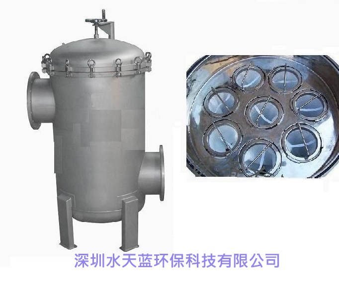 多袋式過濾器結構和單袋式過濾器差不多,唯一不同的是多袋式過濾器上蓋會有一個搖臂,因為多袋式過濾器產(chǎn)水量相對于單袋式過濾器來說要大的多,多袋式過濾器一般安裝在產(chǎn)品水過濾處理系統(tǒng)前段,為ro膜過濾系統(tǒng)提供合格的濾液。